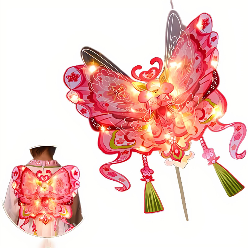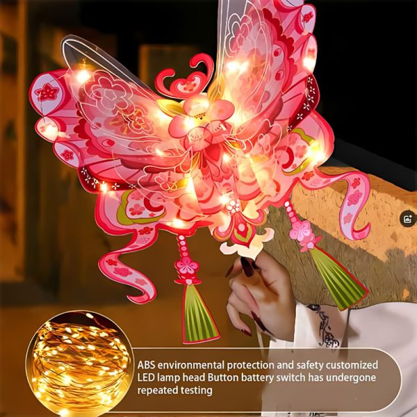 SIGNIFICANT DESIGN:Creative butterfly-themed DIY paper lantern with elegant ancient-style patterns (peach blossom, apricot blossom, etc. options). You can carry it by hand, wear it as a back decoration, or place it in festive settings; it comes with built-in lights (included) and uses waterproof PVC material, bringing a traditional, fairy-like vibe to Spring Festival, kids’ costume parties, or traditional cultural events, which is perfect for ancient-style and festive decors.