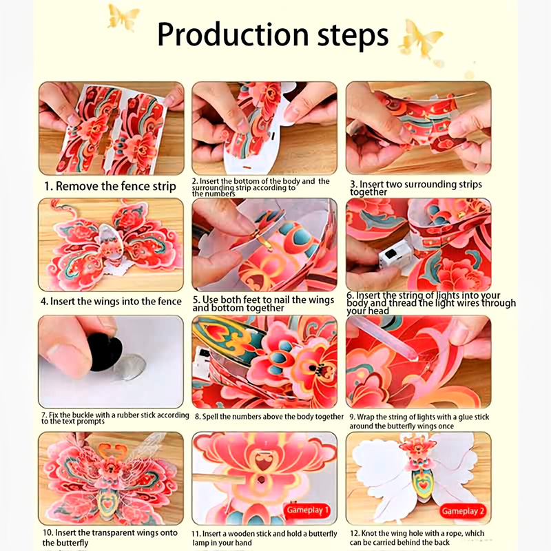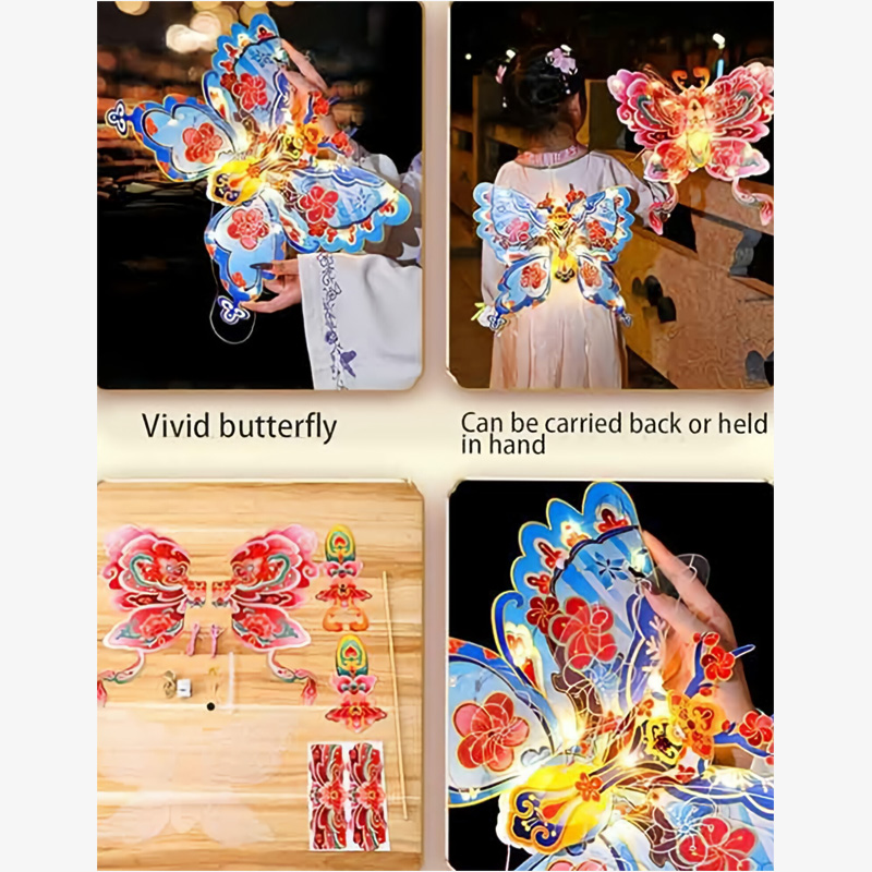 PACKAGING INCLUDES:Each set includes 1 piece of 13-inch butterfly-themed DIY lantern (13 inches), which comes with built-in lights. It’s a hands-on craft kit (DIY) designed for children, and suitable for Spring Festival decorations, kids’ festive activities, and traditional-style party adornments. Simple DIY instructions are also included for easy assembly.