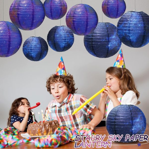- SIGNIFICANT DESIGN:Stunning starry-sky themed paper lanterns (8 pieces total, in rich purple and deep blue tones) with vivid galaxy patterns that mimic twinkling stars and nebulae. You can hang them in clusters, string them as backdrops, or scatter them across party spaces; they’re crafted from durable, lightweight paper—easy to fold for storage and reusable for multiple events. The soft, layered color gradients (from deep blue to ethereal purple) enhance the cosmic vibe, making them ideal for space-themed parties, kids’ birthday celebrations, or bedroom decor. They come with built-in hanging loops for quick setup, instantly transforming any area into a dreamy, immersive starry scene.