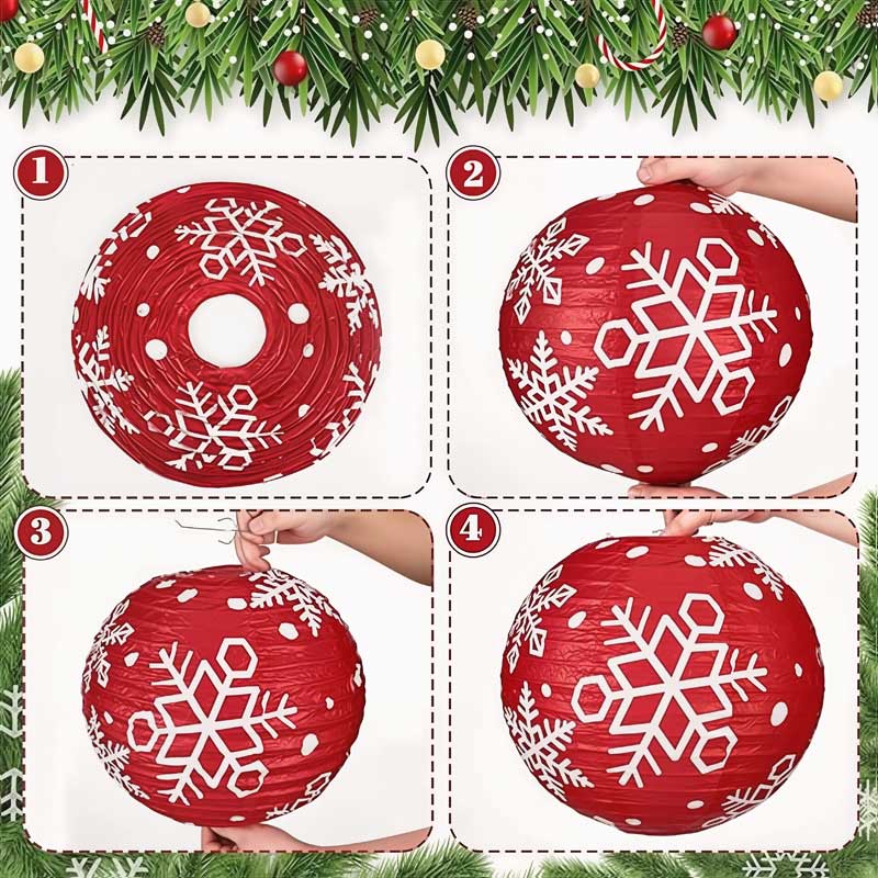 - PACKAGING INCLUDES:Come with 12 pieces of Christmas-themed paper lanterns in total (2 pieces for each of 6 patterns). The 12-inch lantern is about 30.48cm, suitable for Christmas parties, kids’ gatherings and home festive decor. Installation guidance is also provided for instruction.