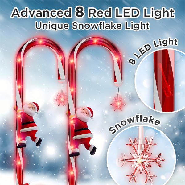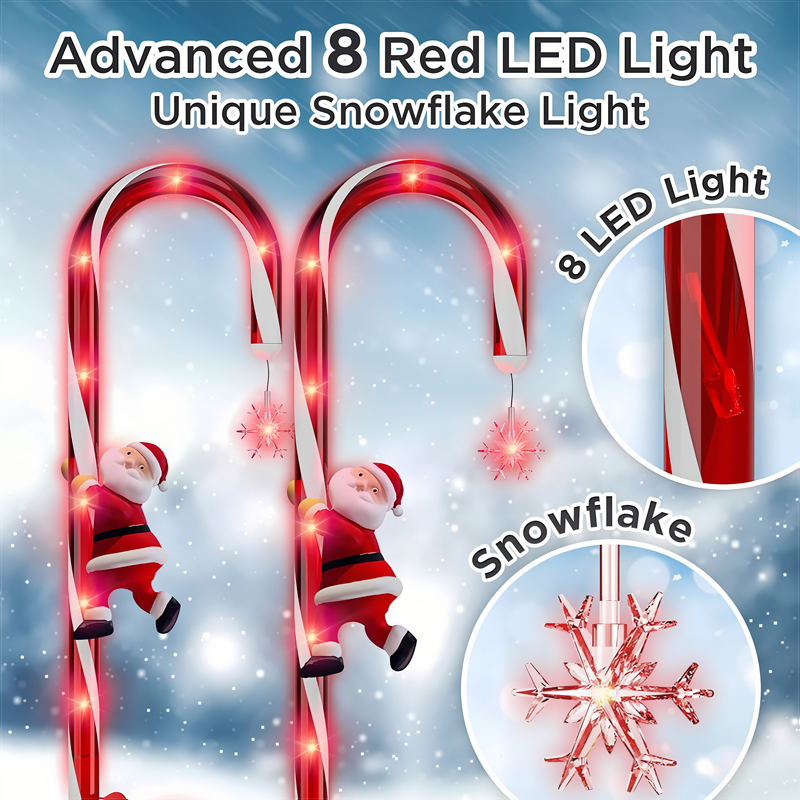 - SIGNIFICANT DESIGN:Creative candy cane-shaped outdoor lights, decorated with lovely Santa Claus and snowflake details (in a red candy cane style). You can stake them in gardens, set them on lawns, or arrange them at outdoor holiday spots; they feature built-in red LED lighting, solar power, 8 lighting modes, and an IP65 waterproof rating. These lights infuse yards, garden setups, or winter gatherings with a cozy, festive Christmas vibe—perfect for adding durable, cheerful decor to outdoor spaces.
