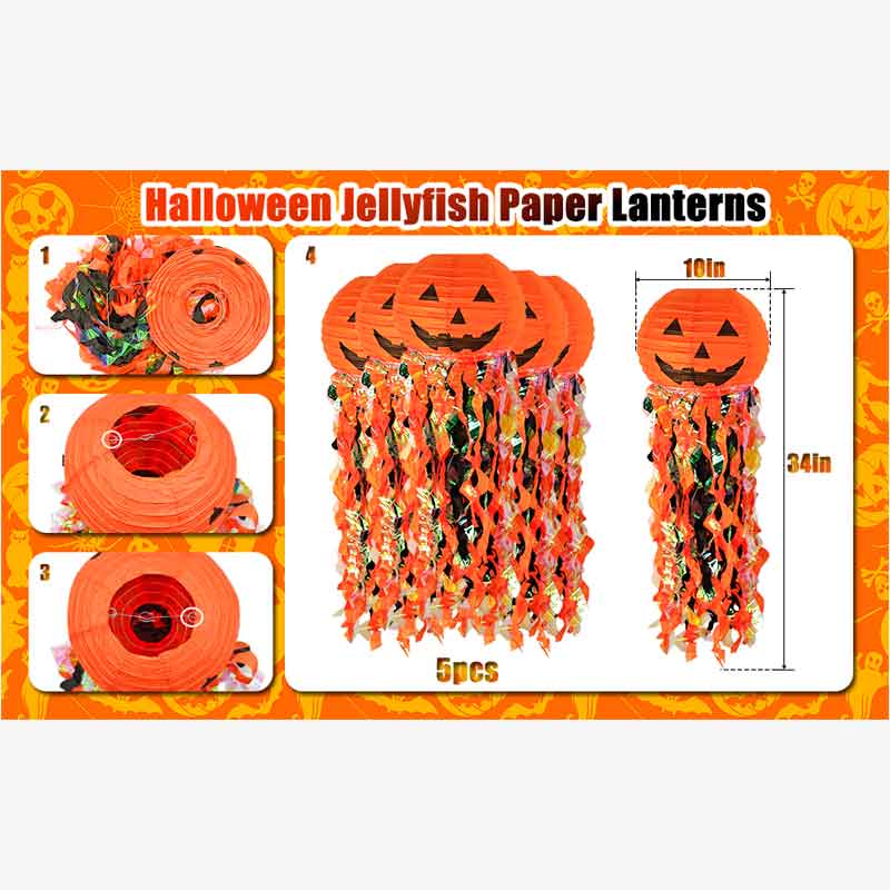 PACKAGING INCLUDES:Come with 5 piece pumpkin-shaped paper lantern in total. The lantern is 10 inches, suitable for Halloween, home, party and festival decors. Installation specification is also provided for instruction.