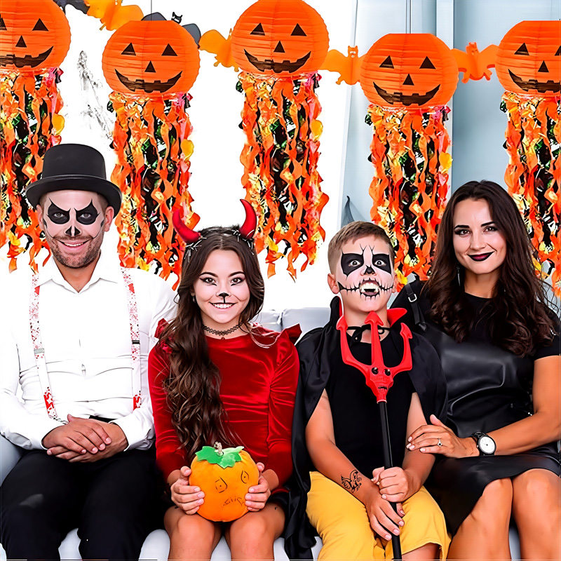 SIGNIFICANT DESIGN:Creative pumpkin-shaped design with classic Halloween face patterns, paired with colorful tassel decorations (orange and red tones). You can hang it on walls, mantels, or party venues; when matching with lights (not included), it can create a festive and spooky Halloween atmosphere, which is very eye-catching.