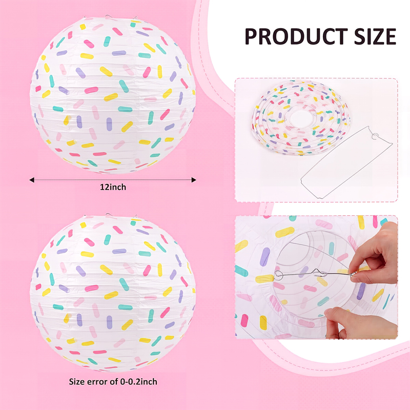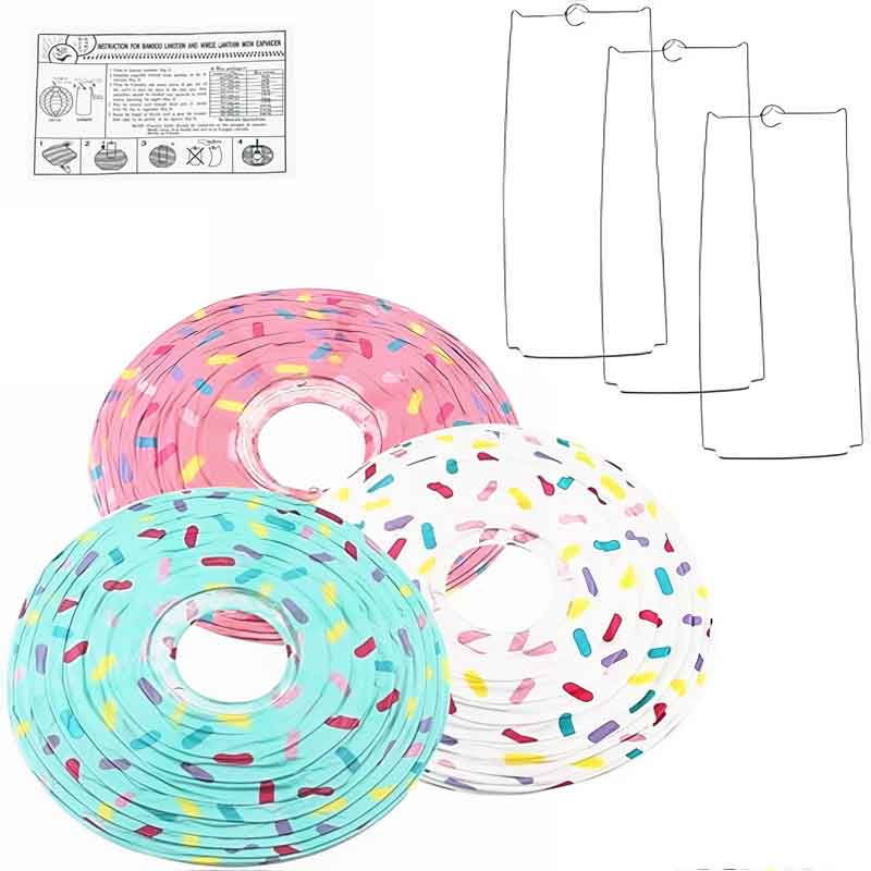 - PACKAGING INCLUDES:This set includes 6 donut-themed paper lanterns (2 pieces for each of 3 patterns), all in 12-inch (about 30.48cm) size. Perfect for kids’ back-to-school parties, birthday gatherings, and home decor, these colorful lanterns add a playful, sweet vibe to any space. Clear installation guidance is also included for easy setup.
