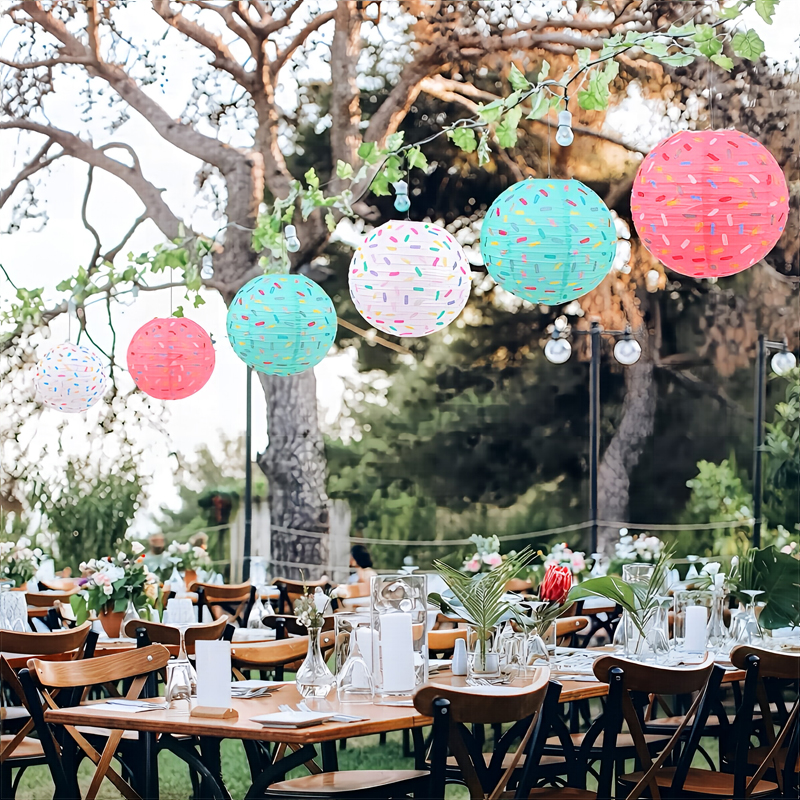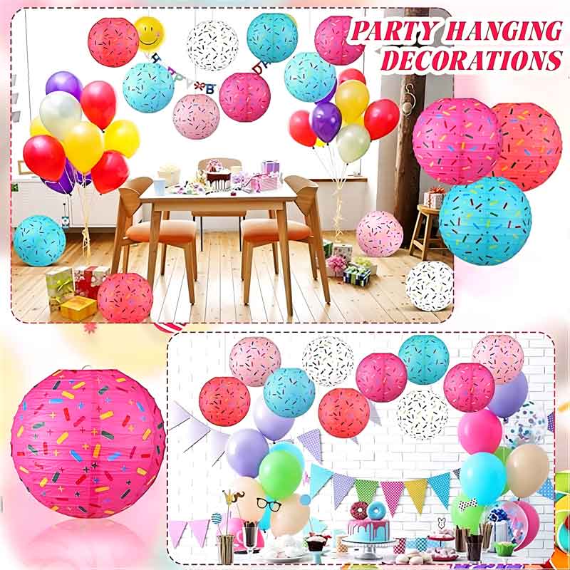 - SIGNIFICANT DESIGN:Creative donut-themed DIY paper lanterns with playful candy sprinkle patterns (available in macaron colors like blue, pink, white). You can hang them from ceilings, cluster them as party backdrops, or scatter them around event spaces; they’re made of lightweight paper (easy to assemble) and pair perfectly with kids’ back-to-school parties, birthday gatherings, or home decor, bringing a sweet, lively vibe to cheerful events, playful celebrations, or cozy indoor setups—ideal for fun, kid-friendly decors.
