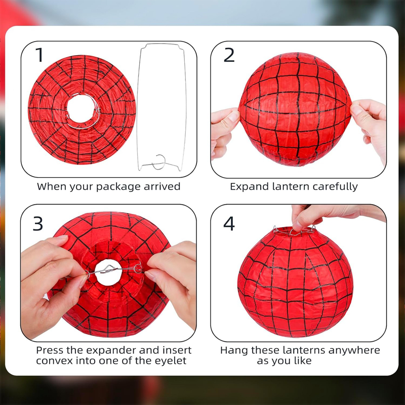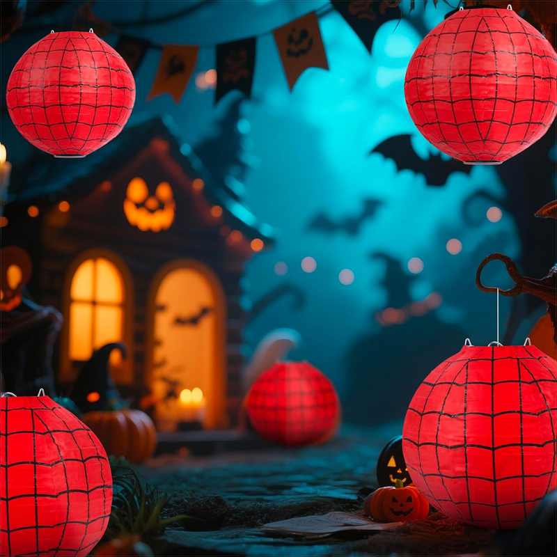 - SIGNIFICANT DESIGN:Creative spider web-themed paper lantern set (6 pieces total, all 8-inch size), featuring a bold red web pattern. You can hang them on ceilings, walls or assemble them into a garland; they’re made of high-quality paper with built-in metal wires (reusable and easy to store), bringing a lively, playful vibe to kids’ birthday parties, graduation events or outdoor activities, which is perfect for fun, eye-catching party decors.